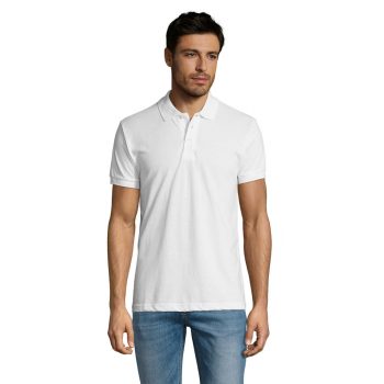 Polo homme en polycoton avec broderie logo cœur – Blanc