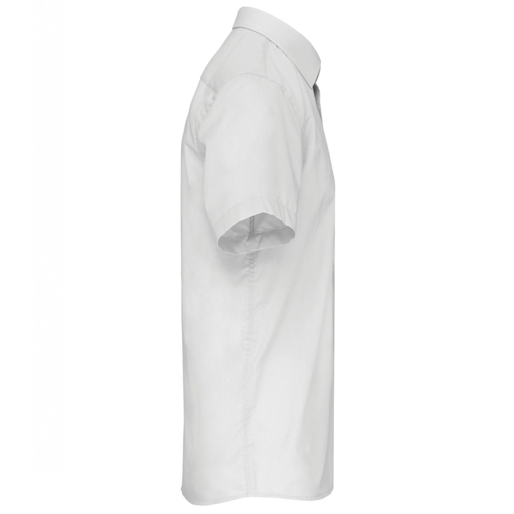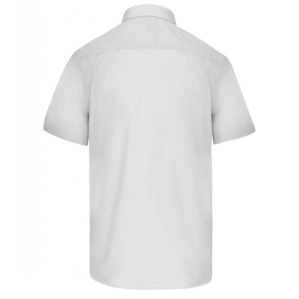 65% polyester / 35% coton. Tissu popeline. Entretien facile. Pointe de col baleinée. Boutons ton sur ton. Poche poitrine côté gauche à angles arrondis. Empiècement dos double. Finition coutures rabattues. Ourlet bas de manche double rempli. Bouton de rappel. Bas arrondi.