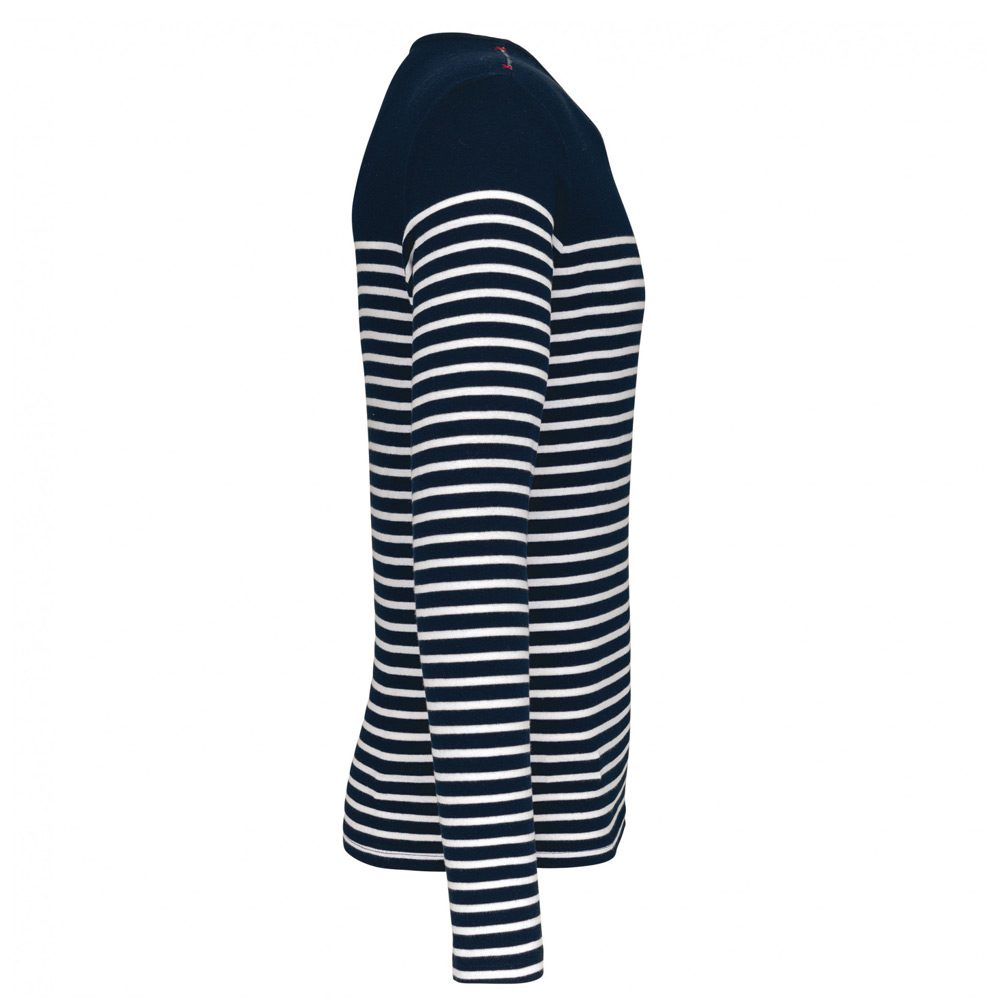 100% coton côte 1×1. Encolure ronde. Point fantaisie sur l’épaule. Fentes latérales.