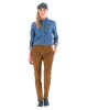 Chino femme ajusté. 2 poches italiennes. Poche dos double passepoil. 6 passants de ceinture. Fermeture par braguette zippée et boutons.